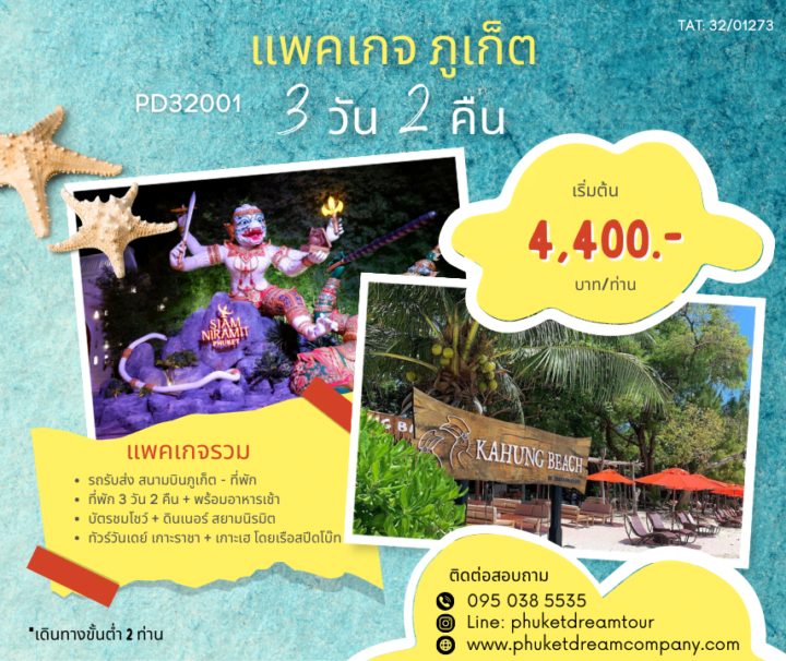 PD32001 แพ็คเกจทัวร์ภูเก็ต 3 วัน 2 คืน รวมที่พัก + รถรับส่ง ชมโชว์ ทานดินเนอร์ สยามนิรมิตภูเก็ต +