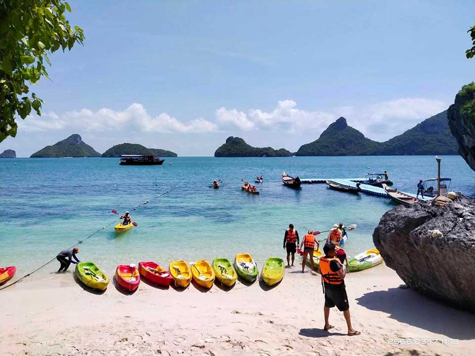 สัมผัสและดื่มด่ำไปกับความงดงามของอุทยานแห่งชาติหมู่เกาะอ่างทอง ซึ่งเป็นพื้นที่คุ้มครองทางทะเลของประเทศไทย สนุกกับการดำน้ำตื้นเพื่อชมความงามของธรรมชาติใต้ท้องทะเล หรือจะเลือกพายเรือคายัคเพื่อไปสำรวจรอบๆอุทยานได้ตามใจชอบ อีกทั้งยังมีอาหารเที่ยงแบบไทยบุฟเฟ่ต์น้ำดื่ม และผลไม้คอยให้บริการ