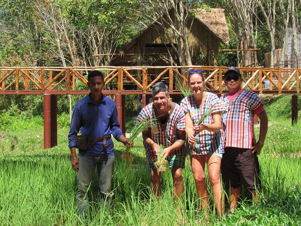 เยี่ยมชมสวนมะพร้าว ดูลิงเก็บลูกมะพร้าว ศึกษาวิธีการกรีดยาง ที่สวนยางพารา แวะดูนาข้าว