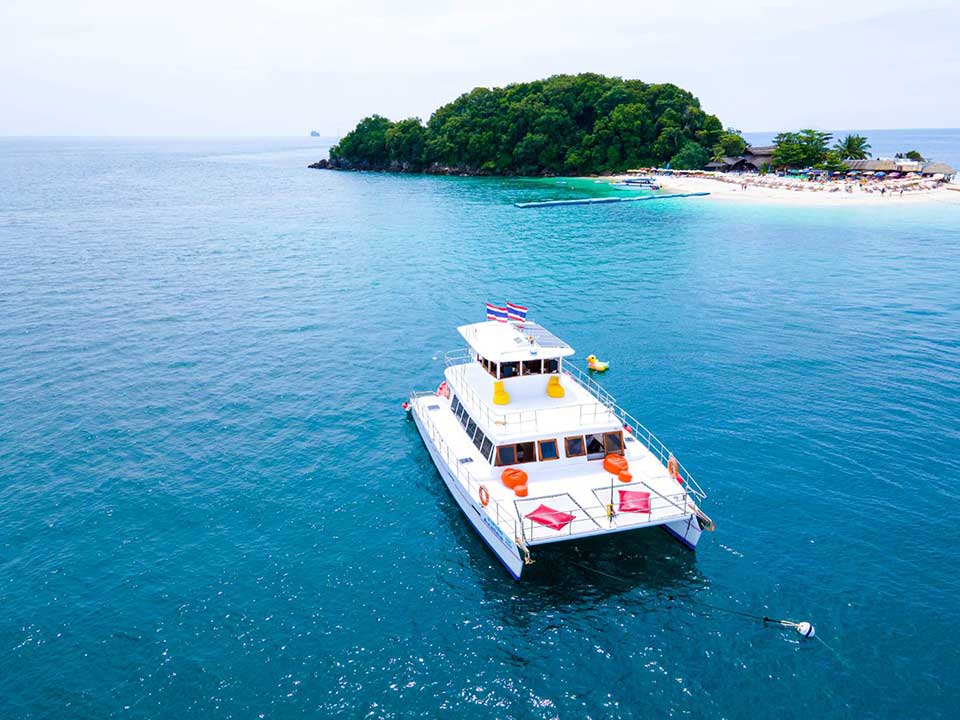 ในช่วงเที่ยงเรือเซลลิ่งยอร์ช คาตามารัน VIP ลำนี้จะพาทุกท่านล่องเรือไปยัง เกาะเฮ – หาดคอรัล บีช เพื่อขึ้นเกาะไปรับประทานอาหารเที่ยง หลังจากรับประทานอาหารเสร็จแล้ว ทุกท่านสามารถเลือกพักผ่อนได้ตามอัธยาศัย ซึ่งจะมีเก้าอี้ชายหาดให้บริการกับทุกท่าน และยังสามารถเล่นน้ำบริเวณหน้าหาด หรือจะเลือกเล่นกิจกรรมกีฬาทางน้ำที่มีบริการให้นักท่องเที่ยว เช่น บานาน่าโบ๊ท, พาลาเซลลิ่ง, พายเรือแคนู, ดำน้ำลึก เป็นต้นทั้งนี้ราคากิจกรรมจะขึ้นอยู่กับทางเกาะ หลักจากสนุกสนานเต็มที่แล้วก็เตรียมตัวเดินทางกลับท่าเรืออ่าวฉลอง และส่งทุกท่านกลับที่พักอย่างปลอดภัย