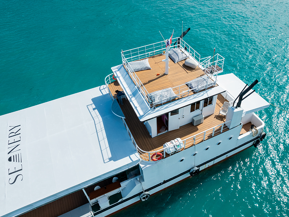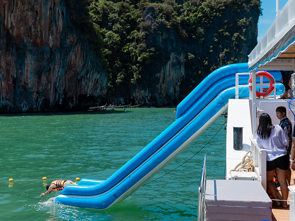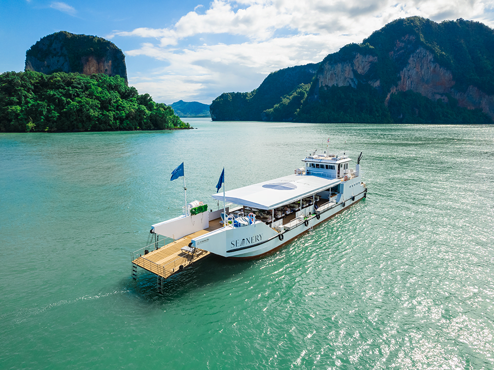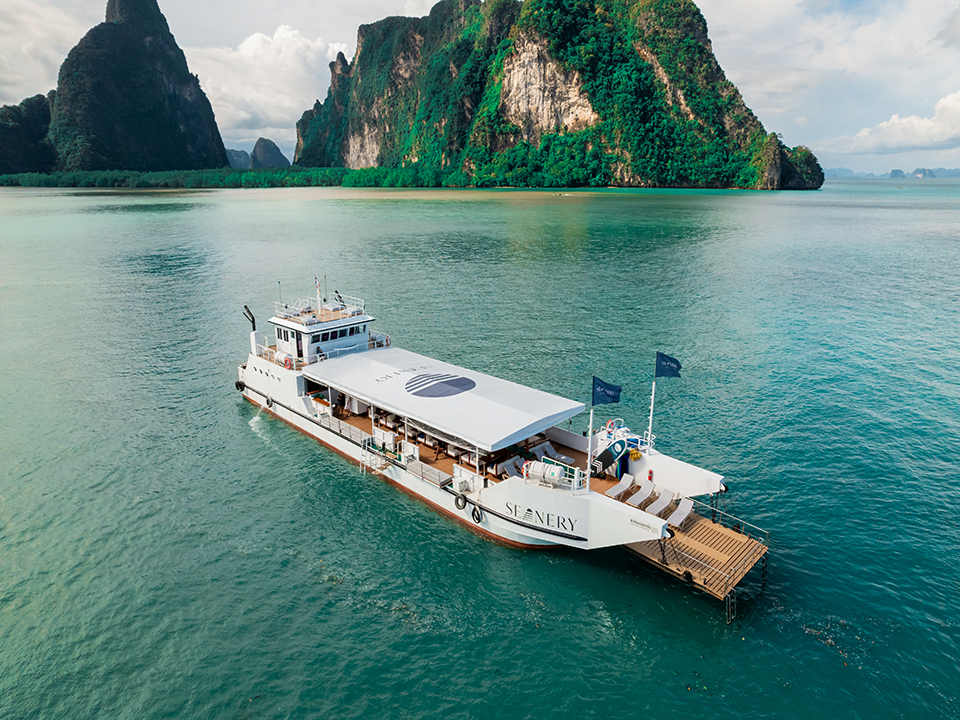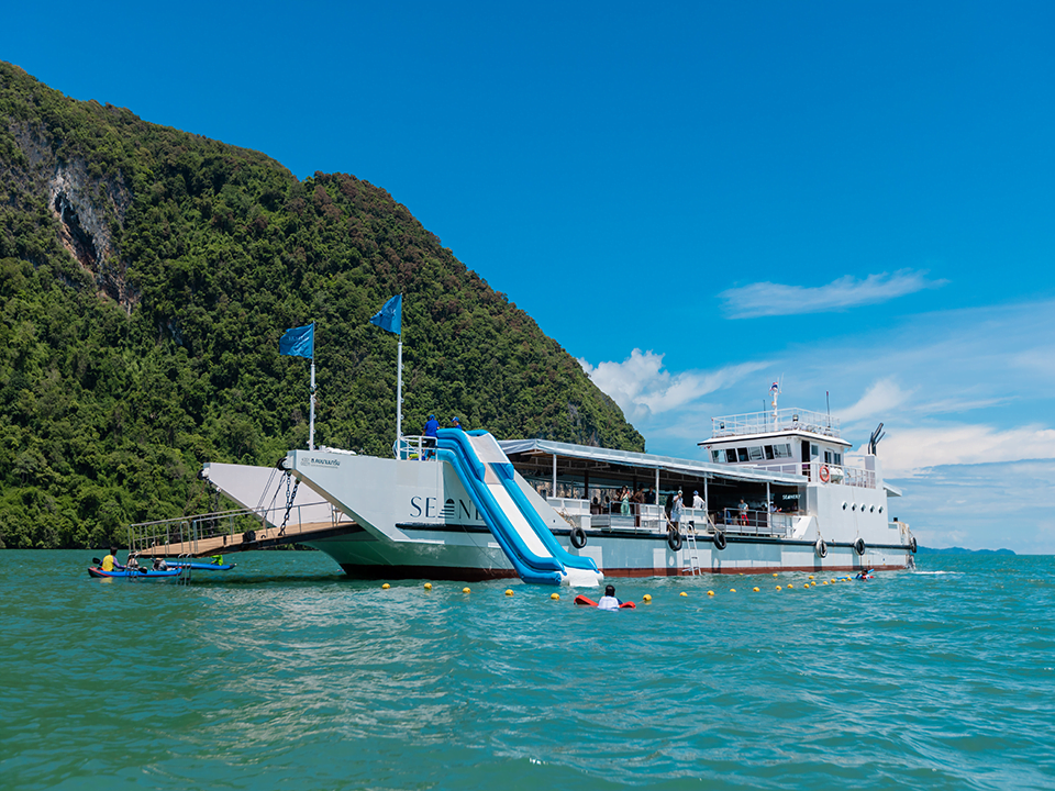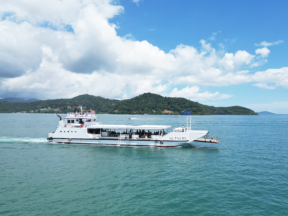 เปิดตัวโปรแกรมใหม่ เรือลำใหม่สดๆจากเรือของ  The Seanery เรือครุยส์ลำใหญ่ ที่มีความสะดวกสบาย มีพื้นที่กว้างขวาง มุมถ่ายรูปสวยๆทั้ง 3 ชั้น โดยชั้นแรกจะเป็นที่นั่ง มีบาร์ ที่จะคอยทำเครื่องดื่มอร่อยๆให้ตลอดทั้งทริป มีดีเจที่เปิดเพลงมันส์ๆ และยังสามารถนั่งด้านข้างเรือ ด้า่นหน้าเรือมีเตียงนอน มีฝักบัวที่ให้อาบน้ำล้างตัว ชั้น 2 จะเป็นห้องของกัปตันเรือ และชั้น 3 จะเป็นชั้นดาดฟ้า ที่สามารถถ่ายรูปมุมสูง สวยๆของเรือได้ หรือจะนอนอาบแดดชิลๆ อีกทั้งบนเรือมีห้องน้ำแยกหญิง และชาย. เรือลำนี้จะล่องไปเรื่อยๆในท้องทะเลของอ่าวพังงา ชมภูเขา ท้องฟ้า ทะเล เมื่อล่องเรือไปได้สักพักประมาณเที่ยงรับประทานอาหารแบบบุฟเฟต์ ที่ทานเชฟทำให้สดๆ จุดแรกที่เรือจอดคือ พายเรือแคนู ณ เกาะห้อง ลอดถ้ำ ชมธรรมชาติ หิน ภูเขารูปทรงต่างๆ และหากท่านใดที่ไม่ต้องการพายแคนู สามารถพักผ่อนบนเรือ เล่นน้ำ สไลเดอร์ พายแพดเดิ้ลบอร์ด หรือกิจกรรมต่างๆที่ทางเรือได้จัดเตรียมให้ และหลังจากนั้น ล่องเรือออกเดินทางไปยัง เขาพิงกัน เขาตะปู James Bond Island สถานที่ที่เคยใช้ถ่ายทำภาพยนต์ฮอลลีวูด เรื่องเจมส์บอนด์ The Man with the Golden Gun จึงเป็นที่มาของชื่อเกาะ James Bond Island สถานที่ท่องเที่ยวชื่อดังระดับโลก หลังจากนั้นล่องเรือกลับสู่ท่าเรือ ซึ่งในระหว่างนั้นทางดีเจ ก็จะเปิดเพลงมันส์ๆ และทานอาหารเย็นแบบบุปเฟ่ต์ Light Dinner Buffet ตกเย็นหน่อยๆ สนุกสนานไปกับปาร์ตี้แสง สีและเสียงเพลงมันส์ๆ จากดีเจบนเรือครุยส์ ท่ามกลางบรรยากาศพระอาทิตย์ตก ตลอดการเดินทางกลับ