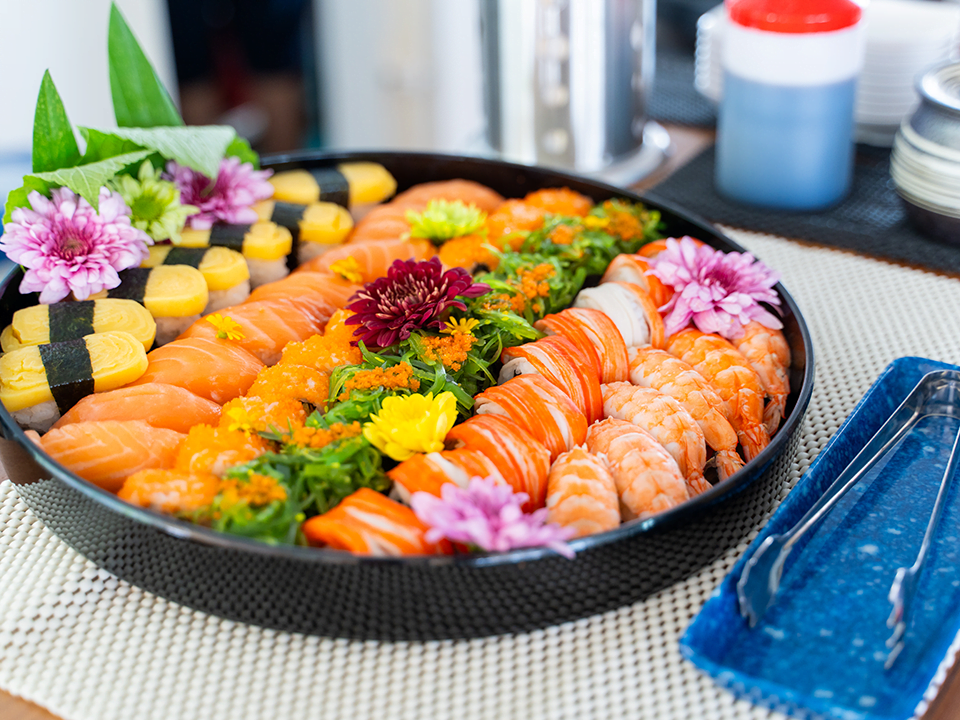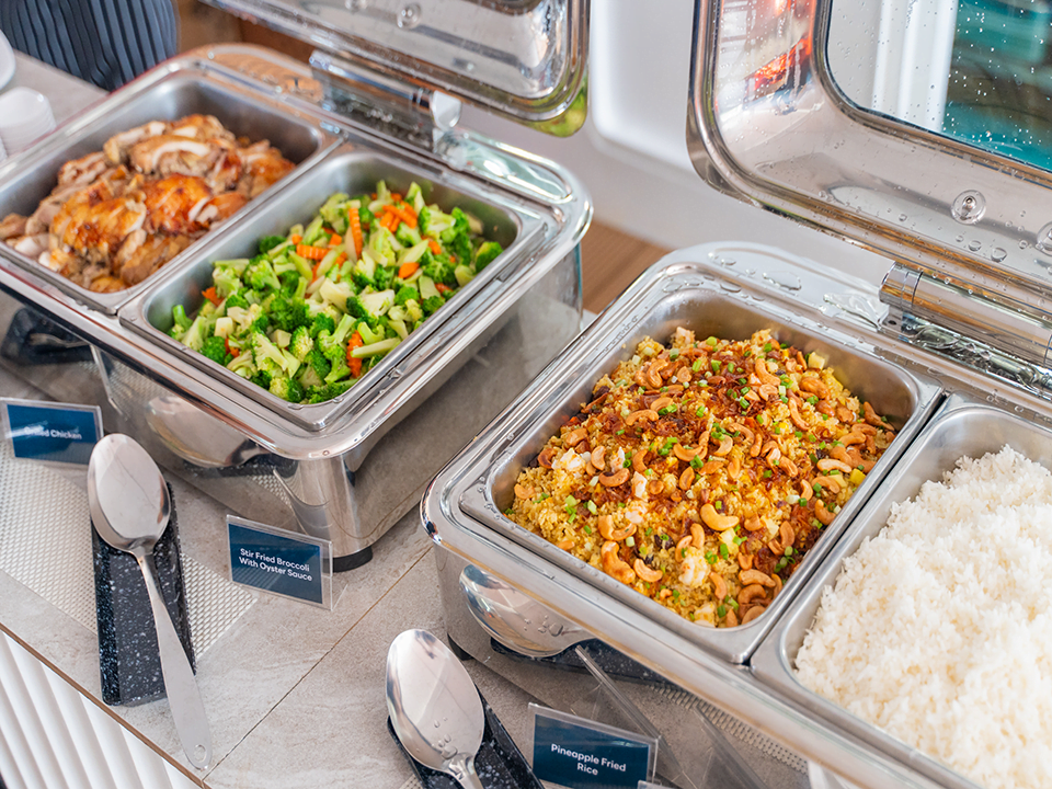 ทางเราได้เตรียมพร้อมเสิร์ฟอาหารเลิศรสหลากหลาย ทั้งอาหารไทย จีน และอาหารญี่ปุ่น แบบบุฟเฟ่ต์ และเครื่องดื่ม Solf drink ให้กับทุกท่าน