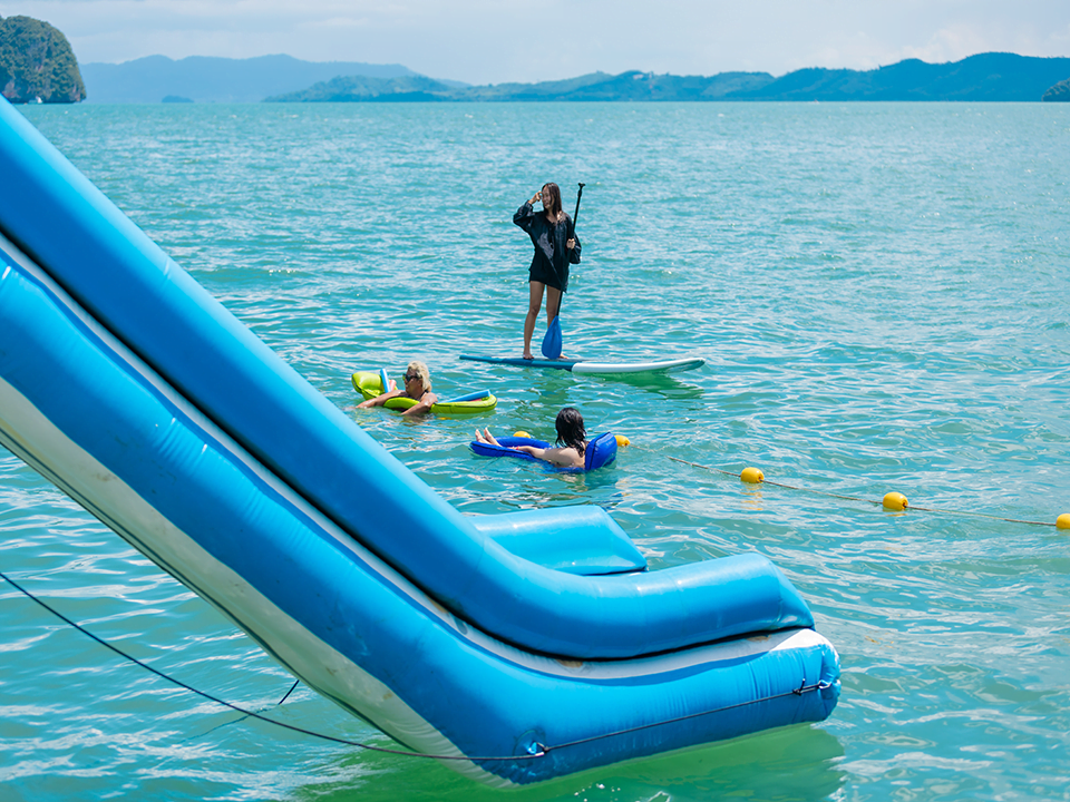 สนุกกับกิจกรรมเล่นน้ำ สไลเดอร์ ห่วงยางลอยน้ำ พายแพดเดิ้ลบอร์ด