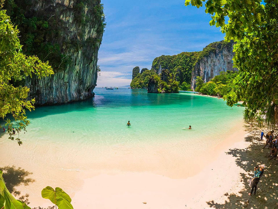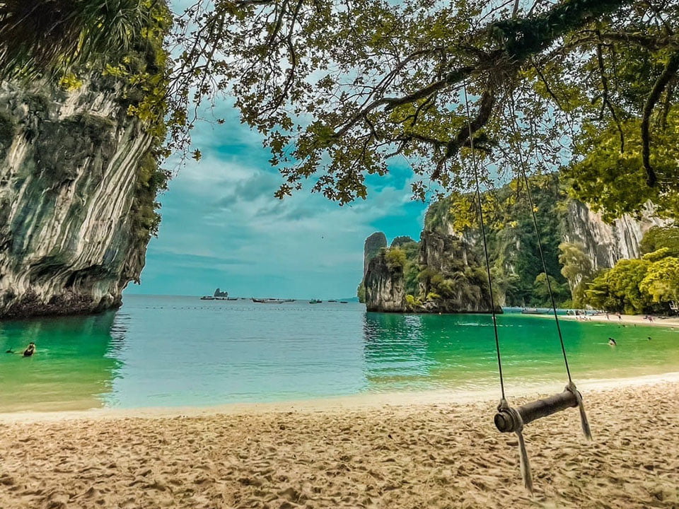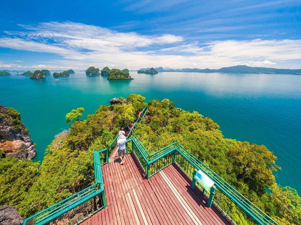 เดินทางถึง เกาะห้อง (Hong Island) เป็นชายหาดที่ดีที่สุดของกระบี่ หาดทรายขาวและน้ำทะเลใสเหมาะสำหรับอาบแดดหรือว่ายน้ำ เยี่ยมชมจุดชมวิว 360 องศา แลนด์มาร์กแห่งใหม่ของเกาะห้องกระบี่ มีความสูง 109 เมตร มีบันไดทั้งหมด 419 ขั้น