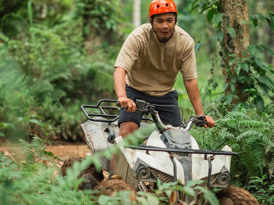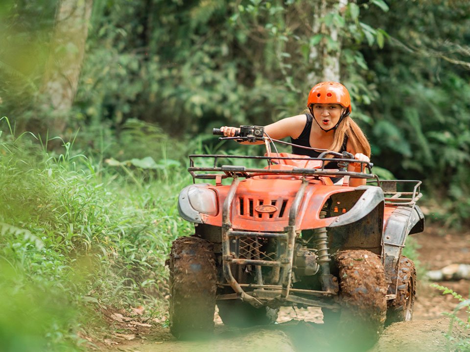 สนุกสุดมันส์กับการ ขับเอทีวี ATV ประมาณ 15 นาที เส้นทางที่ขับจะเข้าไปในป่า ลุยน้ำ โคลน และแวะถ่ายรูปสวยๆ