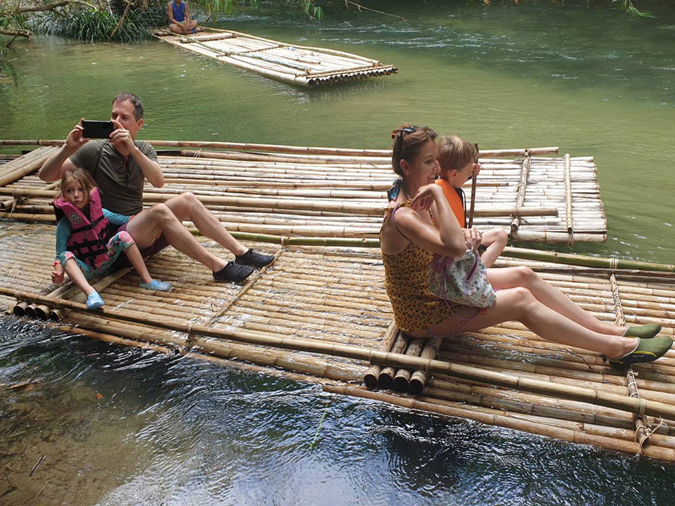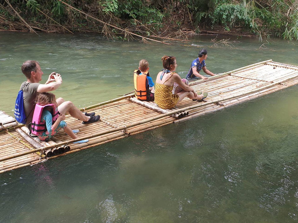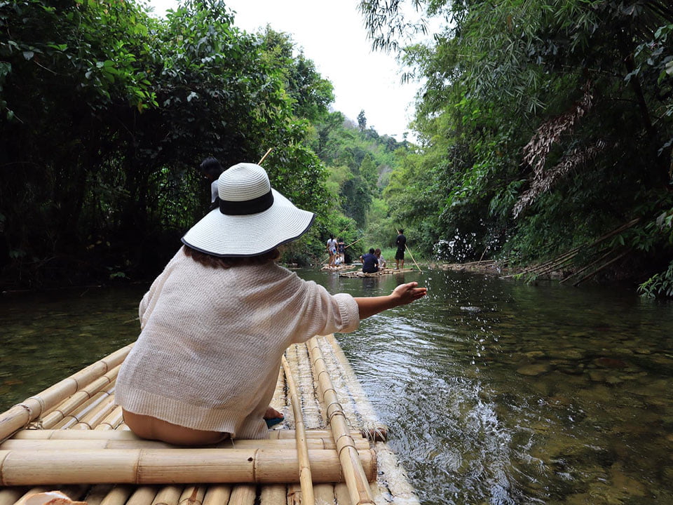 สนุกกับการ ล่องแพไม้ไผ่ Bamboo Rafting กระโดดขึ้นแพไม้ไผ่และล่องลอยไปตามผืนน้ำ ผ่อนคลาย และเพลิดเพลินไปกับป่าฝนที่สวยงามตระการตารอบตัว สัมผัสธรรมชาติที่อุดมสมบูรณ์
