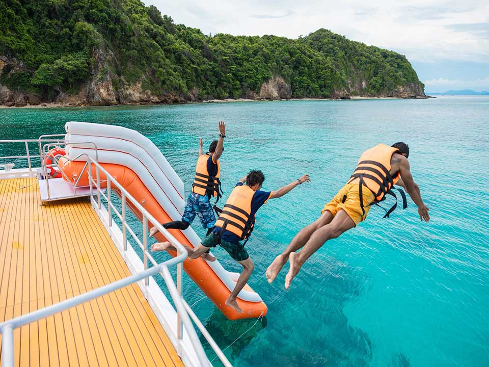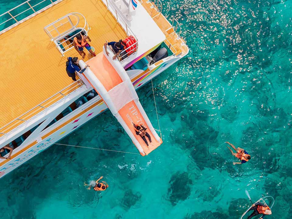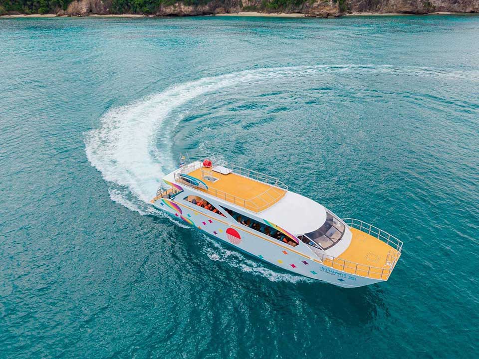 โปรแกรมทัวร์วันเดย์ ภูเก็ต เที่ยวหมู่เกาะพีพี อ่าวมาหยา อ่าวปิเละลากูน ถ้ำไวกิ้ง หาดลิง เกาะไข่ โดยเรือสปีดคาตามารัน ที่ได้รับการปรับปรุงรูปแบบใหม่โดยได้รับแรงบรรดาลใจมาจากเรือคาตามารัน เพื่อประโยชน์ในการทรงตัวที่นั่งขึ้น การเดินทางที่สะดวกสบายขึ้น ด้วยขนาดเรือที่มีพื้นที่ใช้สอยมากกว่าเรือสปีดโบ๊ทธรรมดา และเรือสปีดคาตามารันยังสามารถรับแรงกระแทกจากคลื่นได้ดีกว่า โดยคงความคล่องตัว และความรวดเร็วในการเดินทางได้อย่างดี และยังเหมาะกับท่านใดที่มีอาการเมาเรือง่าย