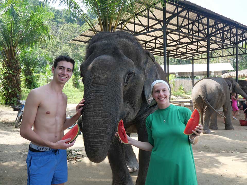 – ให้อาหารช้าง + อาบน้ำช้าง –