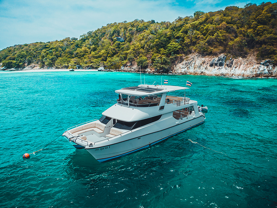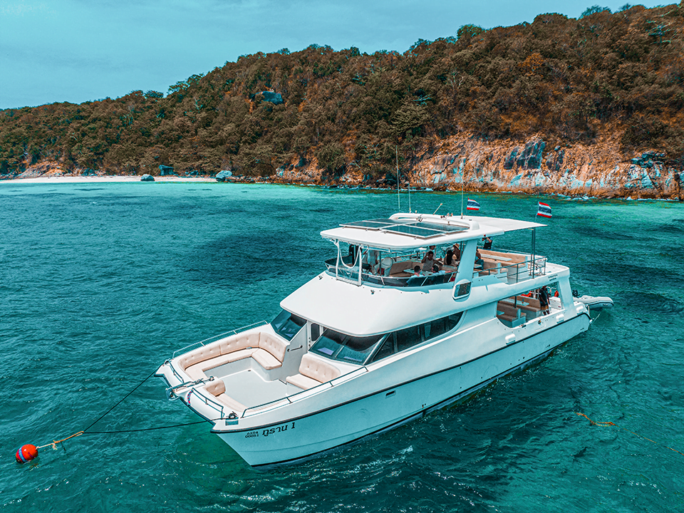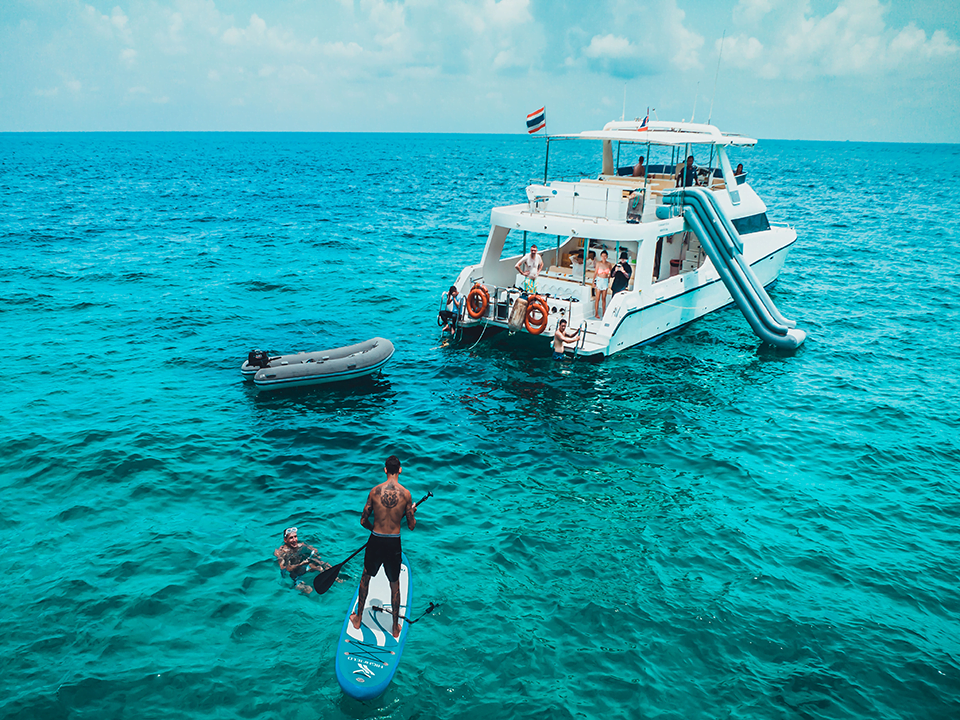 ยกระดับการล่องเรือเที่ยวหมู่เกาะพีพี โดยเรือยอร์ช พาวเวอร์คาตามารัน Power Catamaran ลำใหญ่ ขนาด 2 ชั้น ที่อำนวยความสะดวกสบาย เรือใหญ่นั่งสบาย มีพื้นที่กว้างขวาง โปรแกรมนี้จะพาทุกท่านไปเปิดประสบการณ์เที่ยวหมู่เกาะพีพี อ่าวมาหยา อ่าวปิเละลากูน กิจกรรมดำน้ำตื้นดูปะการัง พักรับประทานอาหารเที่ยงบนเกาะพีพีดอน ที่ร้านอาหารที่มีคุณภาพ เดินเที่ยวชมผู้คน ร้านค้าบนเกาะพีพีดอน หรือซื้อของฝากได้ตามอัธยาศัย ถึงเวลานัดกลับมาที่เรือและบอกลาเกาะพีพี เพื่อมุ่งหน้าไปยังเกาะไม่ท่อน ล่องเรือดูปลาโลมา *ทั้งนี้ขึ้นอยู่กับสภาพอากาศและอารมณ์ของปลาโลมา หลังจากนั้นจอดแวะบริเวณจุดดำน้ำ สนุกกับการเล่นน้ำ ดำน้ำดูปะการัง สไลดเดอร์ พายเรือคายัก แพดเดิ้ลบอร์ด หลังจากสนุกกันอย่างเต็มอิ่มแล้ว เริ่มล่องเรือกลับระหว่างนั้นชมพระอาทิตย์ตก และท้องฟ้าที่กำลังเปลี่ยนสี พร้อมทาน BBQ และผลไม้บนเรือไปด้วย