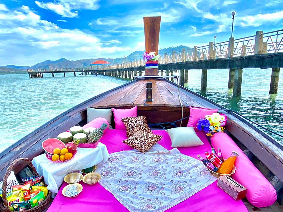 ทัวร์ภูเก็ต ดรีม มีบริการให้เช่าเรือหางยาวสุดหรูพร้อมพร็อพถ่ายรูปแก๋ๆ ที่มีเบาะสีชมพูสีสันสวยงาม ได้แบบทั้งวัน สำหรับท่านที่ต้องการความเป็นส่วนตัวไพรเวท ที่ต้องการมาสนุกกับครอบครัว เพื่อนๆ แฟนสุดพิเศษ เราขอแนะนำเรือหางยาวลำนี้ โปรแกรมที่เปิดให้บริการจะมีทั้ง เกาะไข่นอก เกาะไข่ใน เกาะนาคา เกาะลาวะ และอ่าวพังงา หรือบริเวณเกาะใกล้ภูเก็ต มีทั้งแบบครึ่งวันเช้า ครึ่งวันบ่าย และเต็มวัน ให้ทุกท่านได้เลือก และบนเรือยังมีบริการสิ่งอำนวยความสะดวกมากมาย อาทิ พร็อพหมอนอิง ผ้าปูบาติก ดอกไม้ ผลไม้ เป็นต้น เพื่อให้ทุกท่านสนุกกับการถ่ายรูปโพสต์ท่าเก่ๆบนเรือได้อย่างจุใจ และตื่นตาตื่นใจไปกับวิวทิวทัศน์อันน่าทึ่งของทะเลภูเก็ต และตื่นตาตื่นใจไปกับฝูงปลาและปะการังหลากหลายชนิดใต้ท้องทะเล หากเลือกเที่ยวยที่เกาะไข่ก็เพลิดเพลินไปกับเหล่าน้องแมวมากมาย