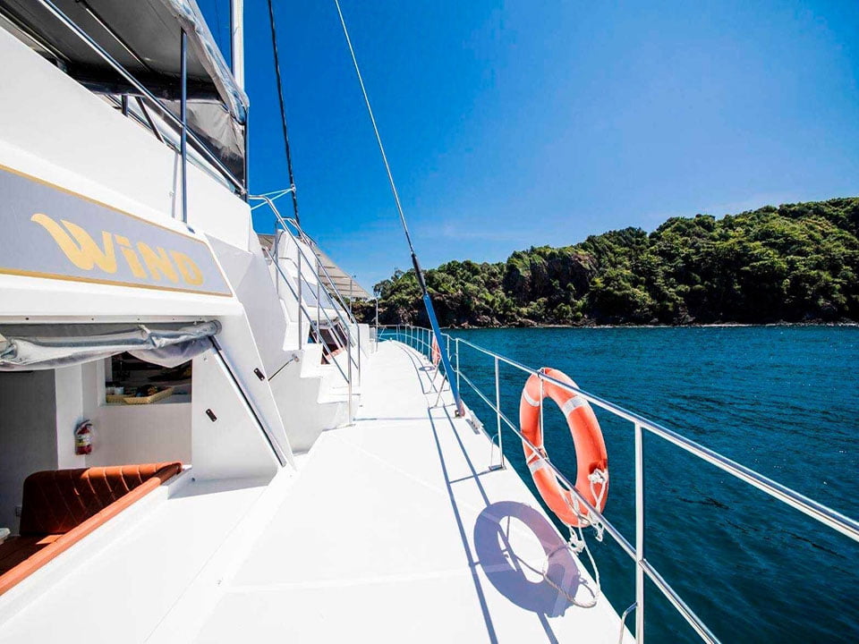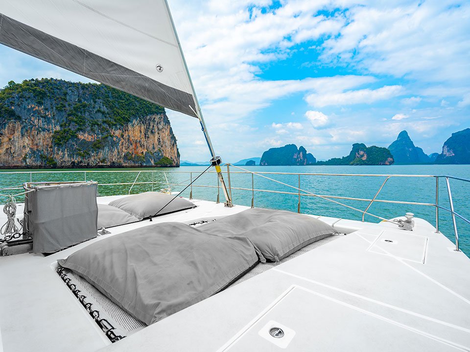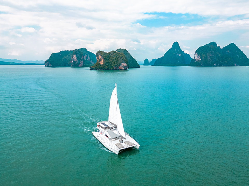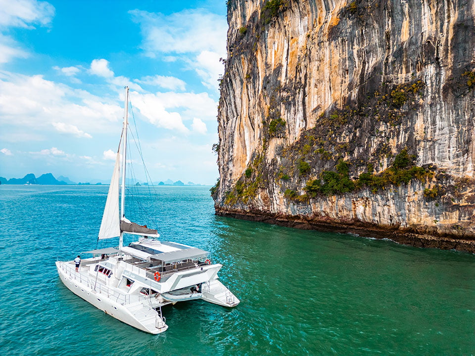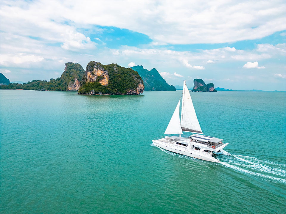 โปรแกรมล่องเรือสุดหรู luxury yacht catamaran เรือขนาดใหญ่ 2 ชั้นที่มีความหรูหรา และคอยให้บริการกับทุกท่าน ได้มาสัมผัสทะเลอันดามันฝั่งอ่าวพังงา ที่คลื่นลมสงบและสามารถท่องเที่ยวได้ตลอดทั้งปี. เรือใบยอร์ชลำใหม่ที่มีความสะดวกสบาย มีห้องน้ำบนเรือ ดีเจแสงสีเสียง และพนักงานที่จะคอยบริการให้กับทุกท่านตลอดทริป โดยโปรแกรมจะเริ่มออกเดินทางจากท่าเรืออ่าวปอ ล่องเรือไปยังเกาะห้อง พังงา สนุกกับการนั่งเรือแคนูชมธรรมชาติ และสนุกกับการลอดถ้ำขนาดต่างๆ แวะเขาตะปู หรือเจมส์บอนด์ เขาพิงกัน สถานที่ขึ้นชื่อระดับโลกที่มีนักท่องเที่ยวมาเที่ยวชมตลอดทั้งปี สุดท้ายแวะที่หาดปาล์ม บีช ณ เกาะยาวใหญ่ ทุกท่านจะได้พักผ่อน เล่นน้ำ นอนอาบแดด เลือกซื้อเครื่องดื่มบนเกาะ หรือกิจกรรมเสริมบนเกาะ เช่น ขับเอทีวี ขับแจ๊ดสกี เป็นต้น
